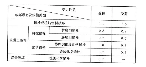 后錨固連接設(shè)計(jì),應(yīng)根據(jù)被連接結(jié)構(gòu)類型、錨固連接受力性質(zhì)及錨栓類型的不同,對(duì)其破壞模式進(jìn)行控制。受拉、邊緣受剪、拉剪復(fù)合受力的結(jié)構(gòu)構(gòu)件及生命線工程非結(jié)構(gòu)構(gòu)件的錨固連接,應(yīng)控制為錨栓或植筋的鋼材破壞;膨脹型錨栓及擴(kuò)底型錨栓錨固連接,不應(yīng)發(fā)生整體拔出破壞或錨桿穿出破壞;植筋連接,不應(yīng)發(fā)生混凝土基材破壞及沿膠筋界面和膠混界面的破壞。通常情況下植筋的破壞形式只有鋼筋破壞一種,而錨栓允許的破壞形式有:錨栓鋼材破壞和混凝土錐體破壞。
