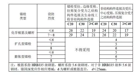 (1)植筋的錨固深度利用計(jì)算公式算出后一般都大于15d;(2)錨栓的錨固深度要小于10d;