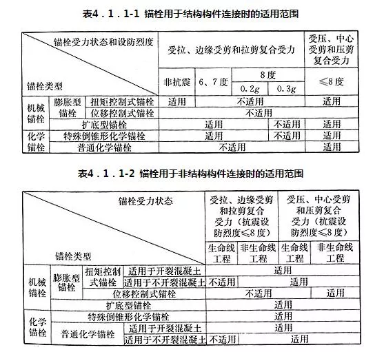 化學(xué)植筋的適用于鋼筋混凝土承重結(jié)構(gòu)和砌體承重結(jié)構(gòu)構(gòu)件的錨固,錨栓主要應(yīng)用于普通混凝土承重結(jié)構(gòu)和非結(jié)構(gòu)構(gòu)件的后錨固連接,承重結(jié)構(gòu)中不可使用膨脹錨栓來固定,必須使用擴(kuò)底錨栓或者倒錐型錨栓。化學(xué)植筋可以作為新增鋼構(gòu)件的錨固件,但是大量應(yīng)用的是新增混凝土構(gòu)件或擴(kuò)大截面混凝土構(gòu)件的鋼筋生根等;錨栓只能作為被連接鋼構(gòu)件的連接件等。錨栓用于結(jié)構(gòu)構(gòu)件連接時(shí)的適用范圍如下: