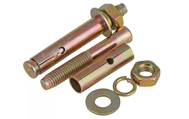 膨脹螺栓,膨脹螺栓上包一個(gè)圈筒,這個(gè)圈筒上是有縫隙的,用時(shí)在墻上打一個(gè)洞。把膨脹螺栓放到這個(gè)洞里,在擰緊螺栓時(shí)圈筒被擠壓撐開。這樣使螺栓卡在洞里,起到固定的作用。