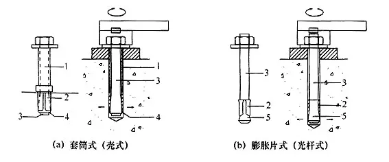 承重結(jié)構(gòu)用的機(jī)械錨栓,應(yīng)采用有鎖鍵效應(yīng)的后擴(kuò)底錨栓。通過錨孔底部擴(kuò)孔與錨栓組件之間的鎖鍵形成錨固作用的錨栓。
